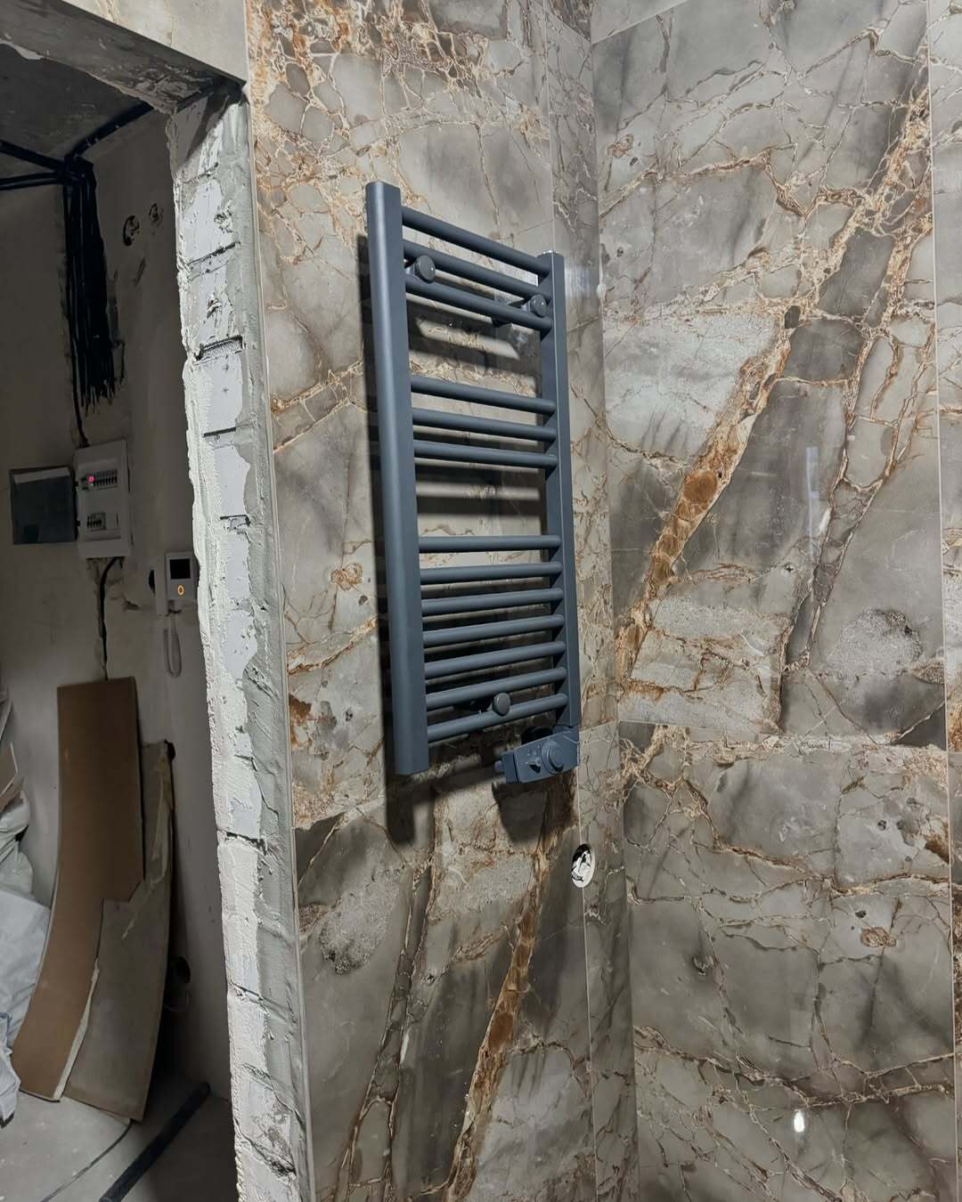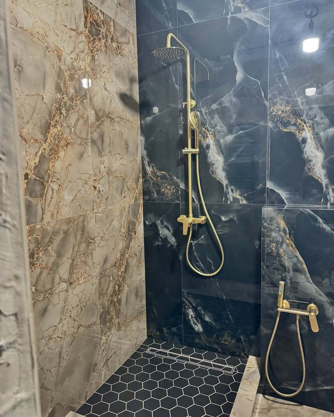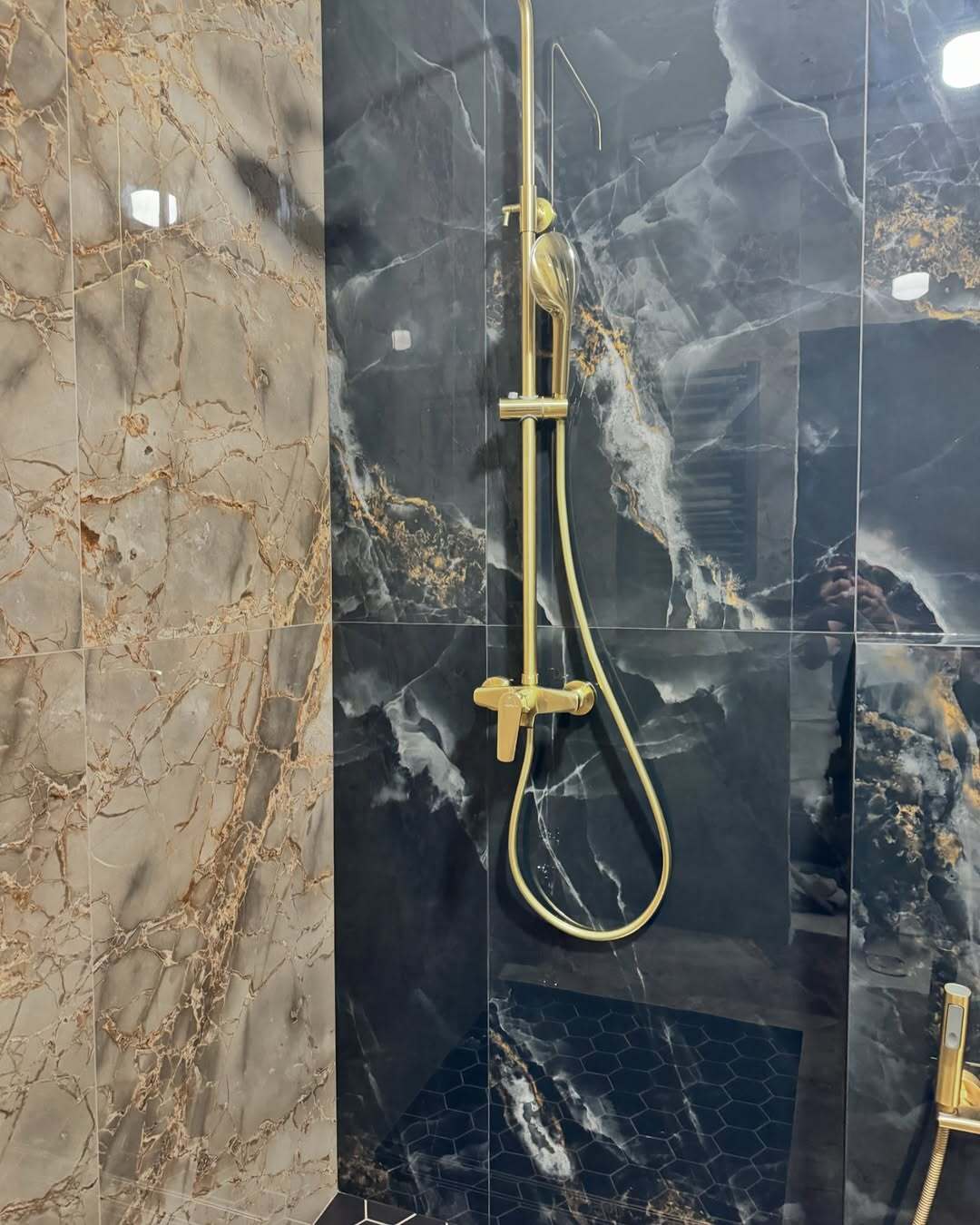 • Керамогранит: Форматы 60x60 см и 60x120 см, что позволило создать стильный и современный интерьер.
