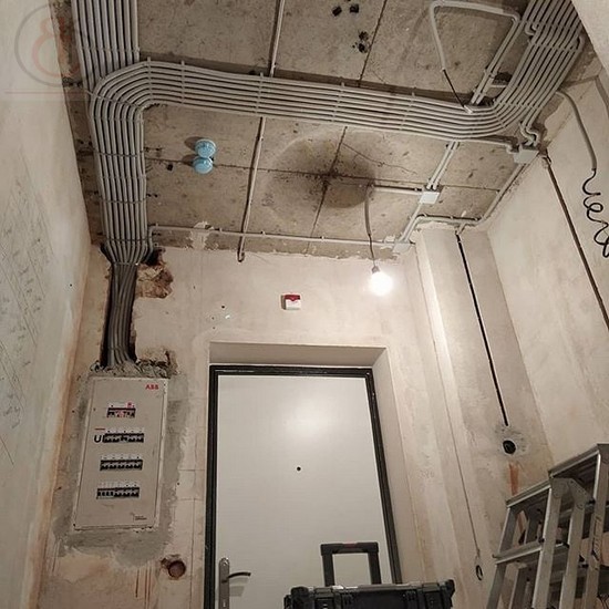 Обратился ко мне клиент по комплексной разводке электрики и сборке электрощитовой. Разводка проводилась по потолку. Фото отчет сделанной работы.