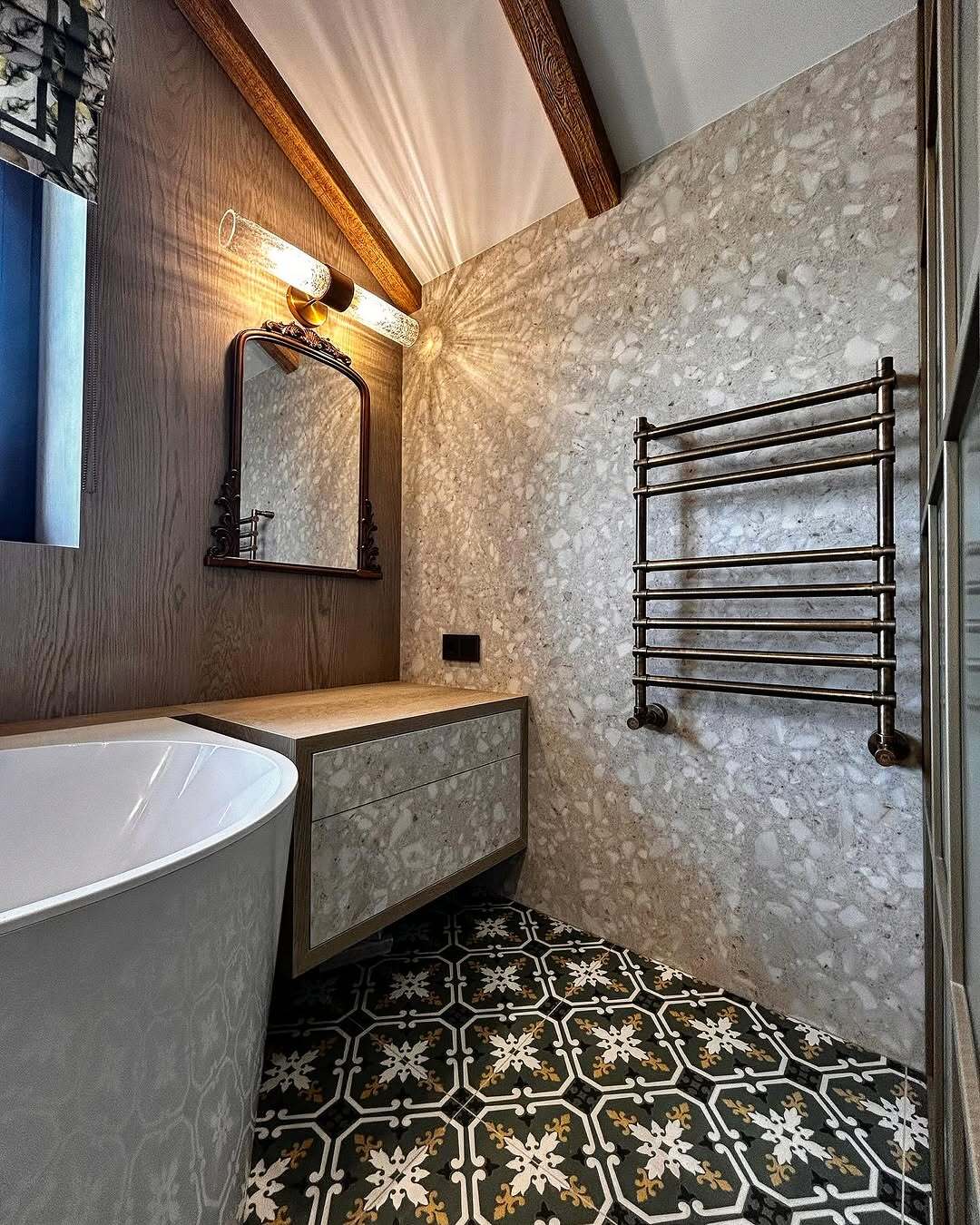 Описание: Мы провели полную отделку совмещенного санузла на мансардном этаже щитового дома. Проект включал все этапы работ: от демонтажа до установки чистовой комплектации. Учитывая особенности щитовых домов, мы реализовали все задачи с высоким качеством и вниманием к деталям. Дизайн проект был подготовлен с учетом финальной раскладки, что позволило создать функциональное и стильное пространство.