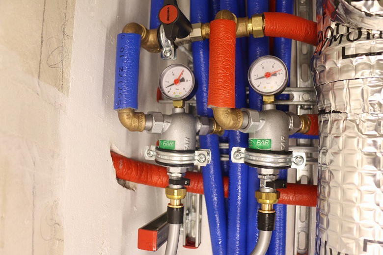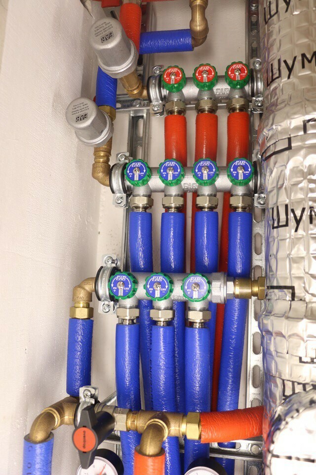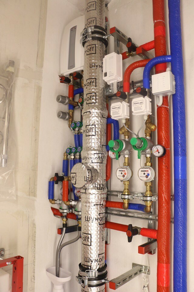 Аккуратная выполненная работа опытными сантехниками. Сборка вводного узла. Монтаж гребенок.