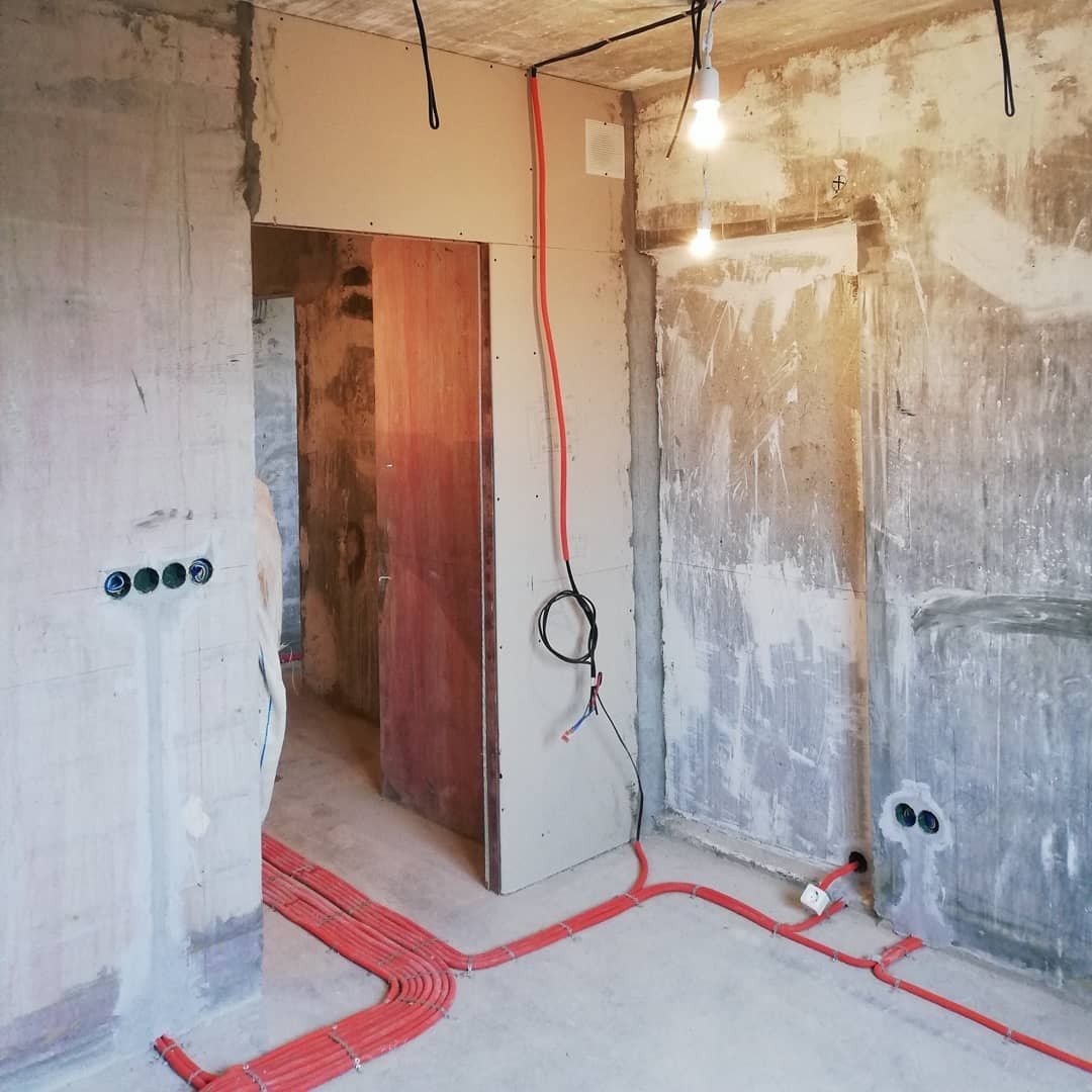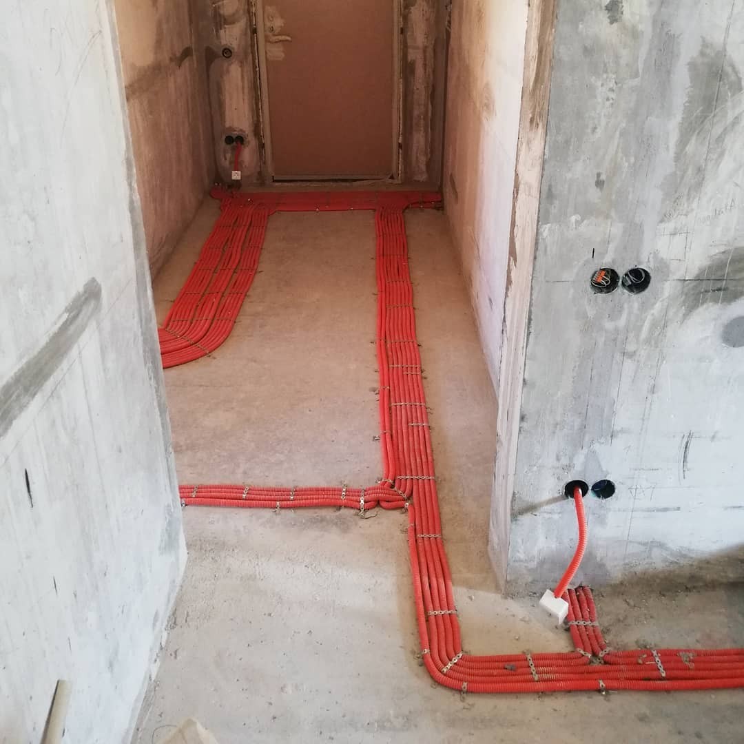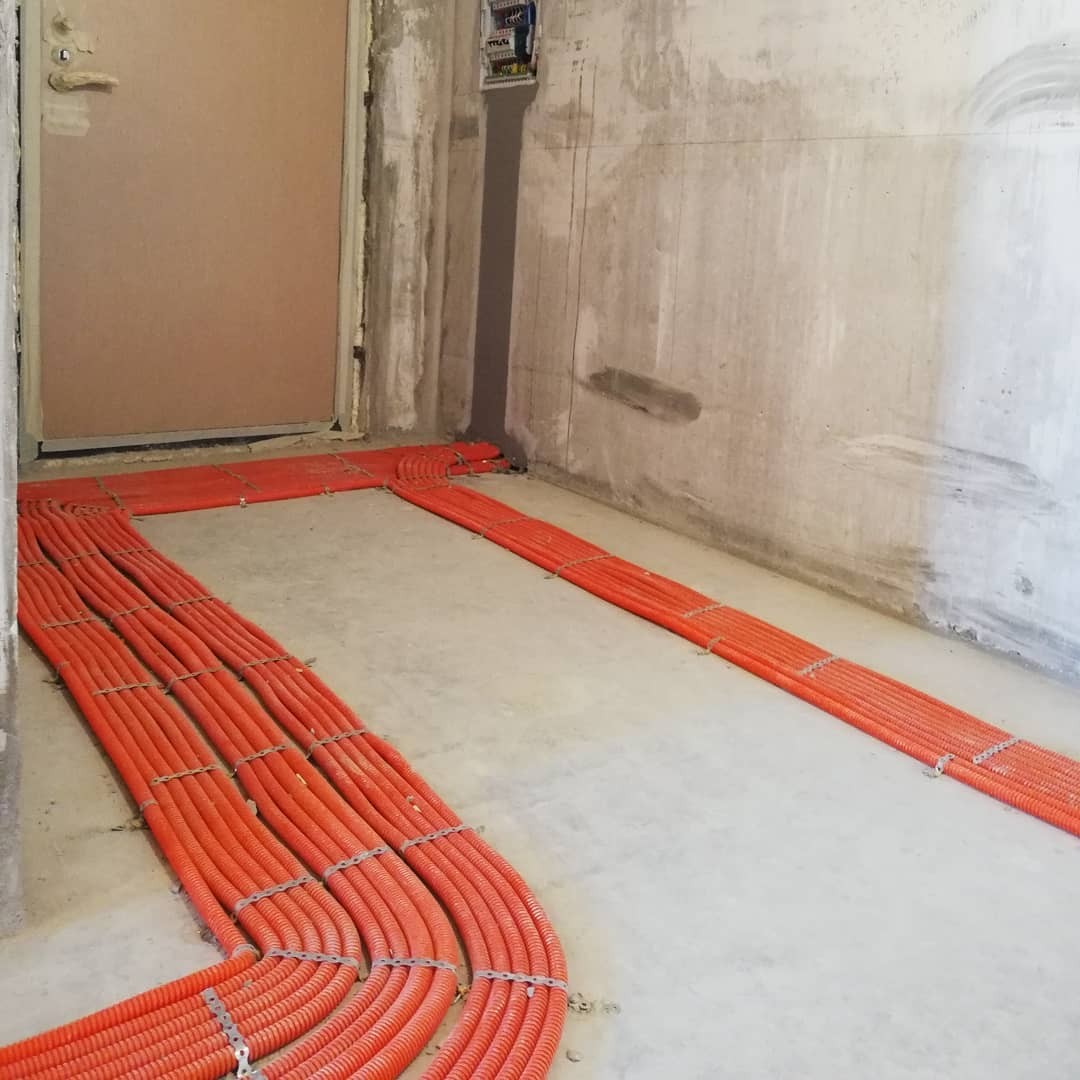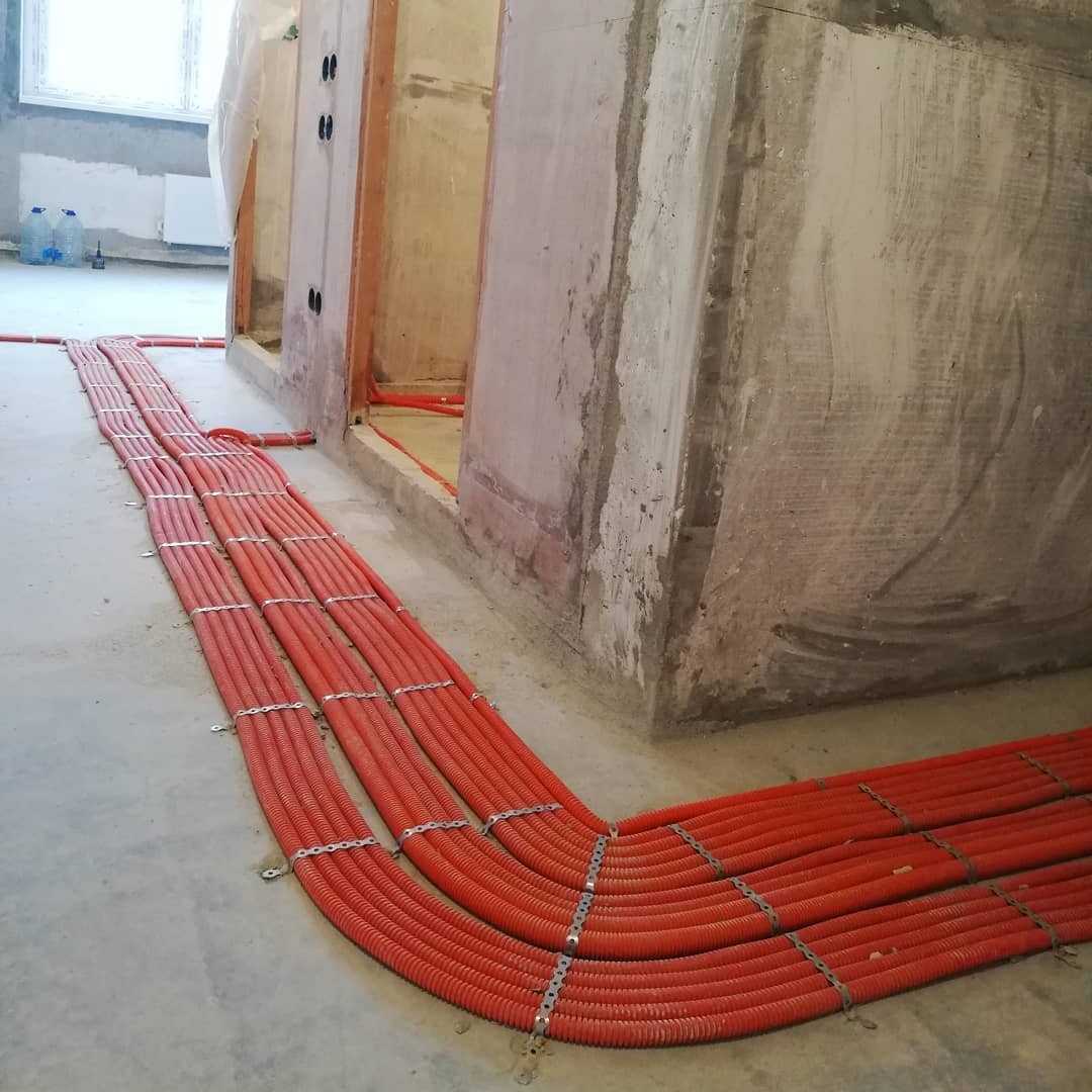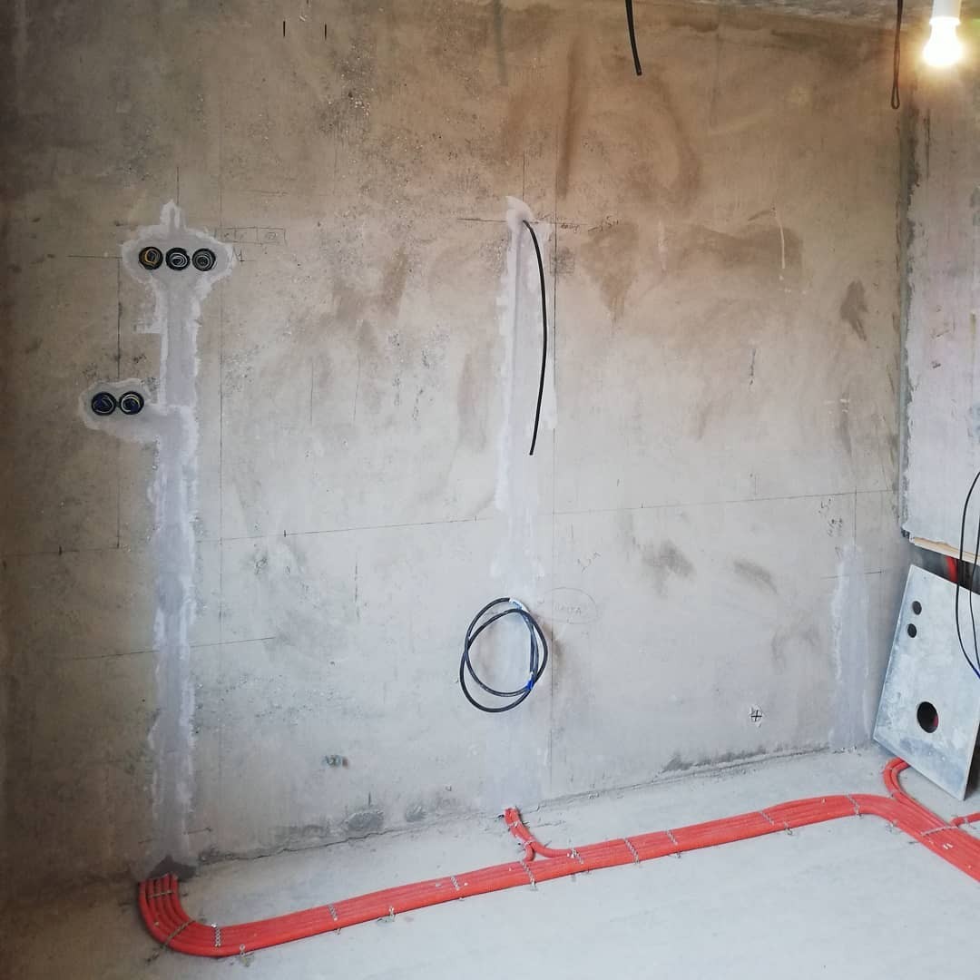 Для клиента в 2-квартире сделали комплексный черновой электромонтаж под ключ. Разводка проводилась по полу в гофре